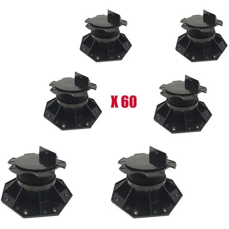 CARTON DE 60 PLOTS RÉGLABLES 60 À 140 MM POUR TERRASSE BOIS ET COMPOSITE – Coloris – Noir