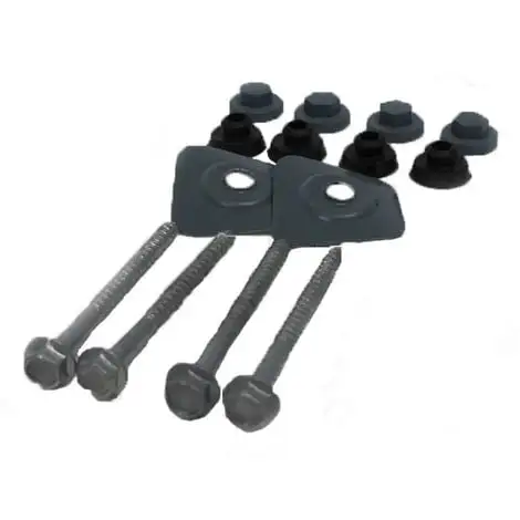 Kit incluant les pièces suivantes : 50 vis auto perceuses, 50 capuchons anti-corrosion 50 plaquettes de maintien acier laquĂ©, 50 rondelles en nĂ©oprène pour assurer l’Ă©tanchĂ©itĂ© de la toiture.