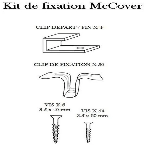Nous attirons votre attention sur la nécessité de commander une équivalence d’un kit de fixation tous les 2m². Voir notice de montage.