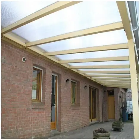 Plaque alvéolaire en polycarbonate isolante d’épaisseur 16mm. Support ultra résistant aux impacts et isolation rendue optimale par sa double paroi. Existe en version translucide (laisse passer la lumière mais pas complètement transparent) ou en version plus opaline. Existe en feuilles de 2 et 3 mètres sur le site. Pour des dimensions supérieures, contactez le service client. Matériau léger qui possède une résistance élevée aux rayons UV. Excellente alternative au verre, solution plus économique et aussi résistante aux impacts. Idéal pour la toiture ou couverture de serres, vérandas, auvents ou carports.