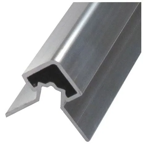 Profilé d’angle extérieur (sortant) pour bardage en bois composite. Le profil est en aluminium et mesure 2,7 m de long.