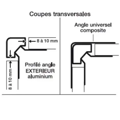 Type de pose: Se vis directement sur les profils d’angles aluminium