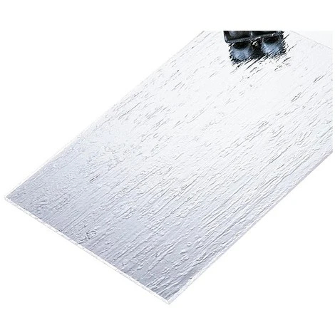 Verre synthĂ©tique sienne cyrus. LĂ©gèrement rainurĂ©, ce vitrage cloisonne les espaces pour crĂ©er de l’intimitĂ©, donner une ambiance tamisĂ©e et feutrĂ©e Ă une pièce de la maison, la sĂ©parer d’autres espaces comme le salon, la cuisine, ou le bureau tout en conservant l’apport de la lumière extĂ©rieure. Existe en 2,5 mm et 5 mm d’Ă©paisseur. Produit lĂ©ger, facile Ă couper et Ă plier. Feuille transparente pour un maximum de luminositĂ©. Verre synthĂ©tique en polystyrène extrudĂ© 3 fois plus rĂ©sistant que le verre.